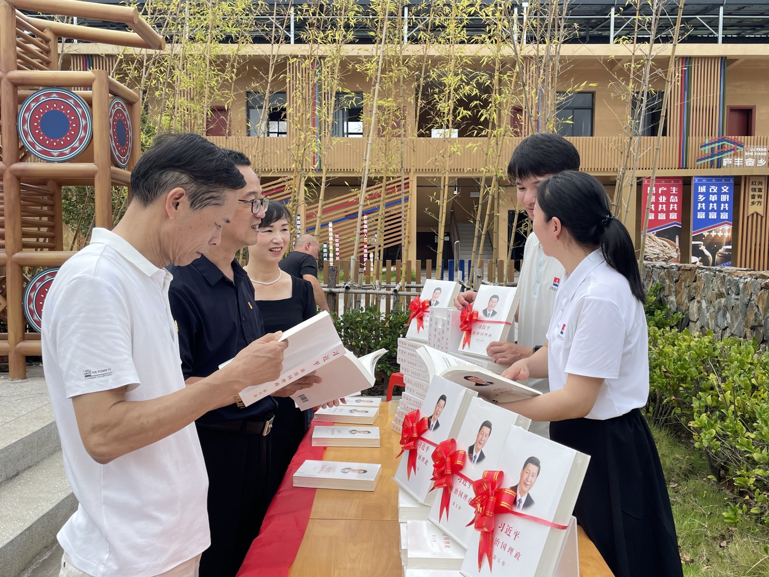 此次活动由上杭县委办公室、上杭县委宣传部与福建新华发行集团上杭分公司联合主办,庐丰畲族乡党委承办。活动现场,上杭分公司走进庐丰畲族乡丰乐村文化会客厅,开展图书流动供应服务。工作人员将精心挑选的政治理论读物、少儿读物、农业技术等书籍分类陈列在展台上,让书籍主动“走”到读者身边,实现了优质文化资源直达基层,满足了乡镇读者的阅读需求。